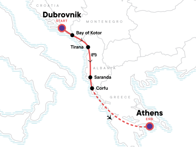 Your Big Night Out Moment: Athens. Orientation walks in Tirana and Corfu. Internal flight. All transport between destinations and to/from included activities.