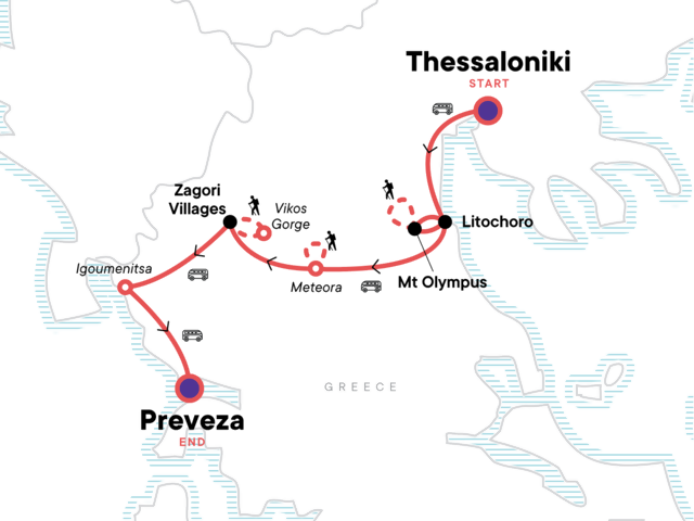 Mt Olympus. Meteora. Zagori. Vikos Gorge. Northern Greece has some seriously legendary spots, and now you can experience them all in equally legendary fashion with this seven-day hiking tour. Use your own two feet to venture from one coast to another as you explore this spectacular, storied landscape, discovering the local way of life as you go.