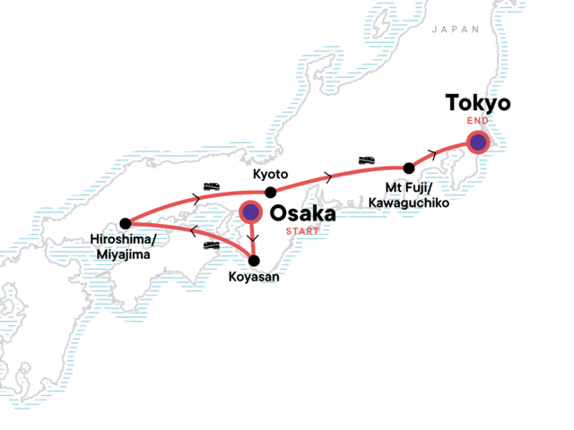 From the Buddhist monks of Kōyasan to the high rollers of Tokyo, see the many faces of Japan on this condensed tour beginning in Osaka. Savour the region’s culinary delicacies and the beautiful views at Mt Fuji. You'll stay in a mountain temple and really soak up local culture in onsen hot springs. A great combination of the traditional and the contemporary, this adventure provides a taste of the rich culture of Japan.
