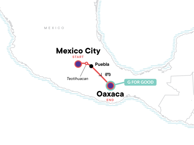 Journey south to beautiful Oaxaca, and get a feel for the city on an orientation walk, stopping to visit one of its sprawling markets. After, visit the Alebrijes Artisan Community for your G for Good moment. Meet a local artisan, speak with them, ask any questions the group may have, and learn more about how the Alebrijes are crafted.