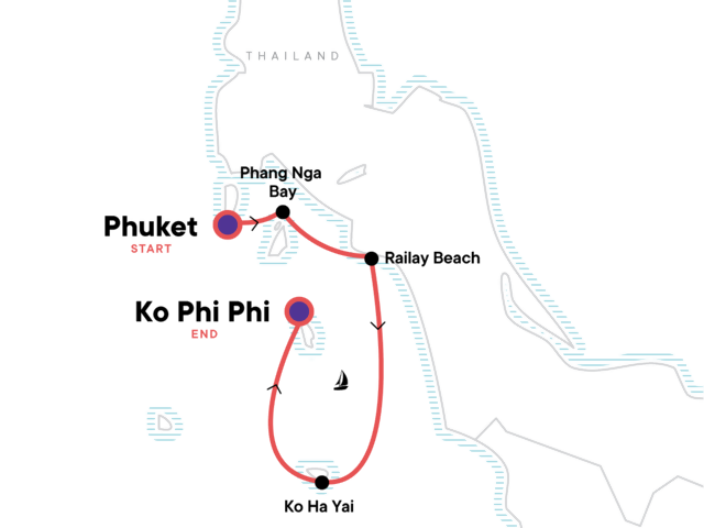 Sail the Andaman Islands of Thailand. James Bond Island visit. Railay Beach visit. Ko Ha Yai visit. Snorkelling in Monkey Bay. Island visits included Krabi Islands, Ko Phi Phi, and Northern Phuket Islands. Snorkelling equipment and two kayaks.