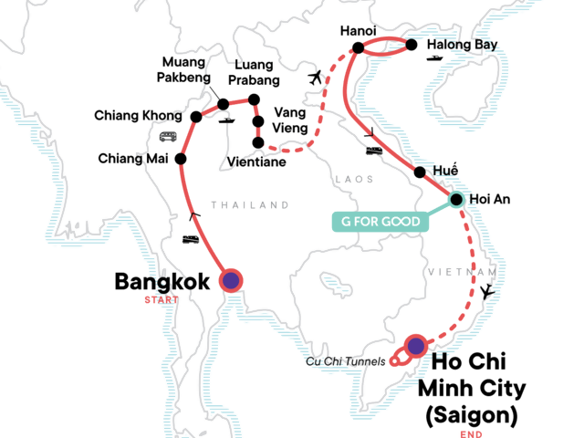 See the highlights of Indochina on this epic 22-day adventure. Explore the vibrant cityscape of Bangkok, marvel at the majestic granite peak of Doi Suthep, and savour pad thai in Chiang Mai. Shop for souvenirs in Ho Chi Minh City and join the locals sipping coffee at a lakeside café in Hanoi. This adventure is the perfect balance between have-to-see highlights and free time to venture out on your own.