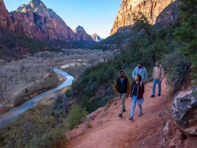 It’s all about Zion today as you get a chance to wander this beautiful national park in Southwest Utah. Take the shuttle into the park and spend the day exploring and hiking with your fellow travelers. Admire the monumental sandstone cliffs of cream, pink, and red that tower into the sky and remember you can choose to turn around on these hikes at any point. In the evening enjoy leisure time back at our Glamping tents. Once it gets dark get ready to sit around the campfire and roast some marshmallows as a group.