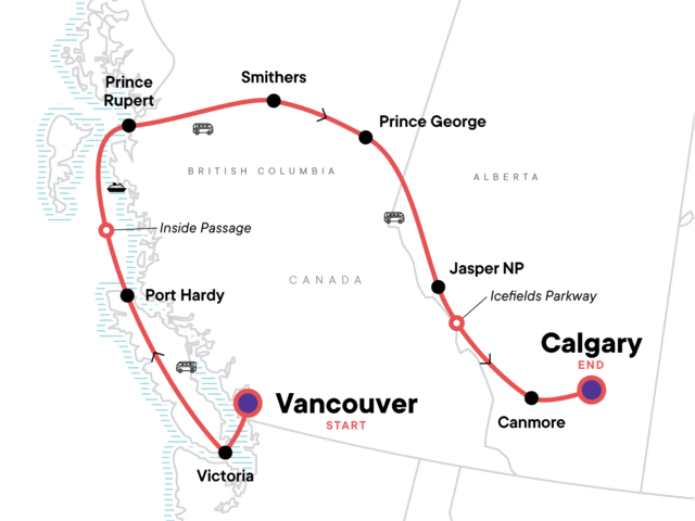 Discover the many landscapes, animals, and ways of life in the Canadian Rockies through an engaging 11-day tour. Venture to Vancouver Island and embark on the Inside Passage ferry, which takes you through glacial fjords to spot orcas and porpoises. Visit a collection of totem poles and immerse yourself in First Nation cultures. After all of these incredible encounters, you'll soon agree that the west coast is the best coast.